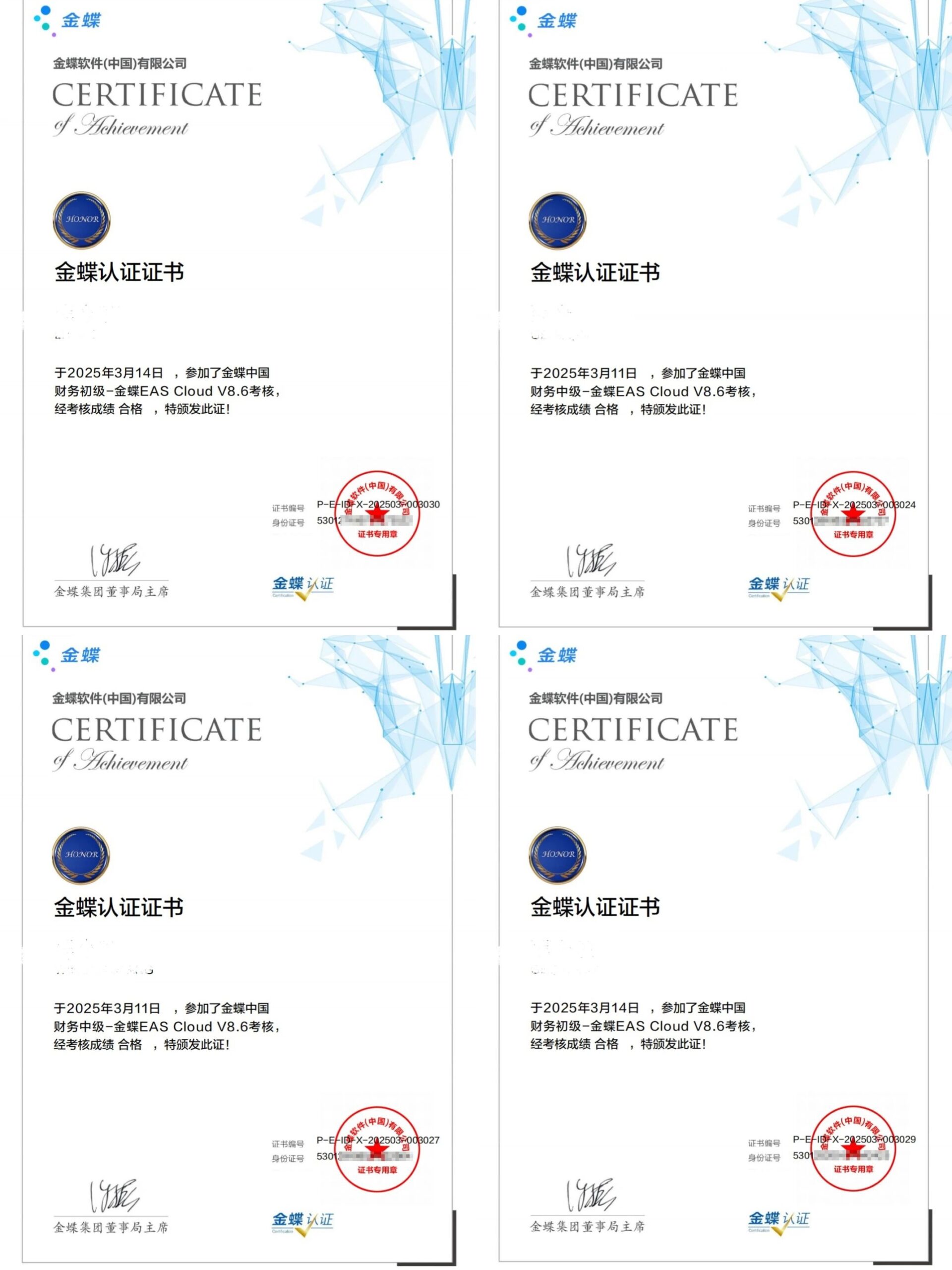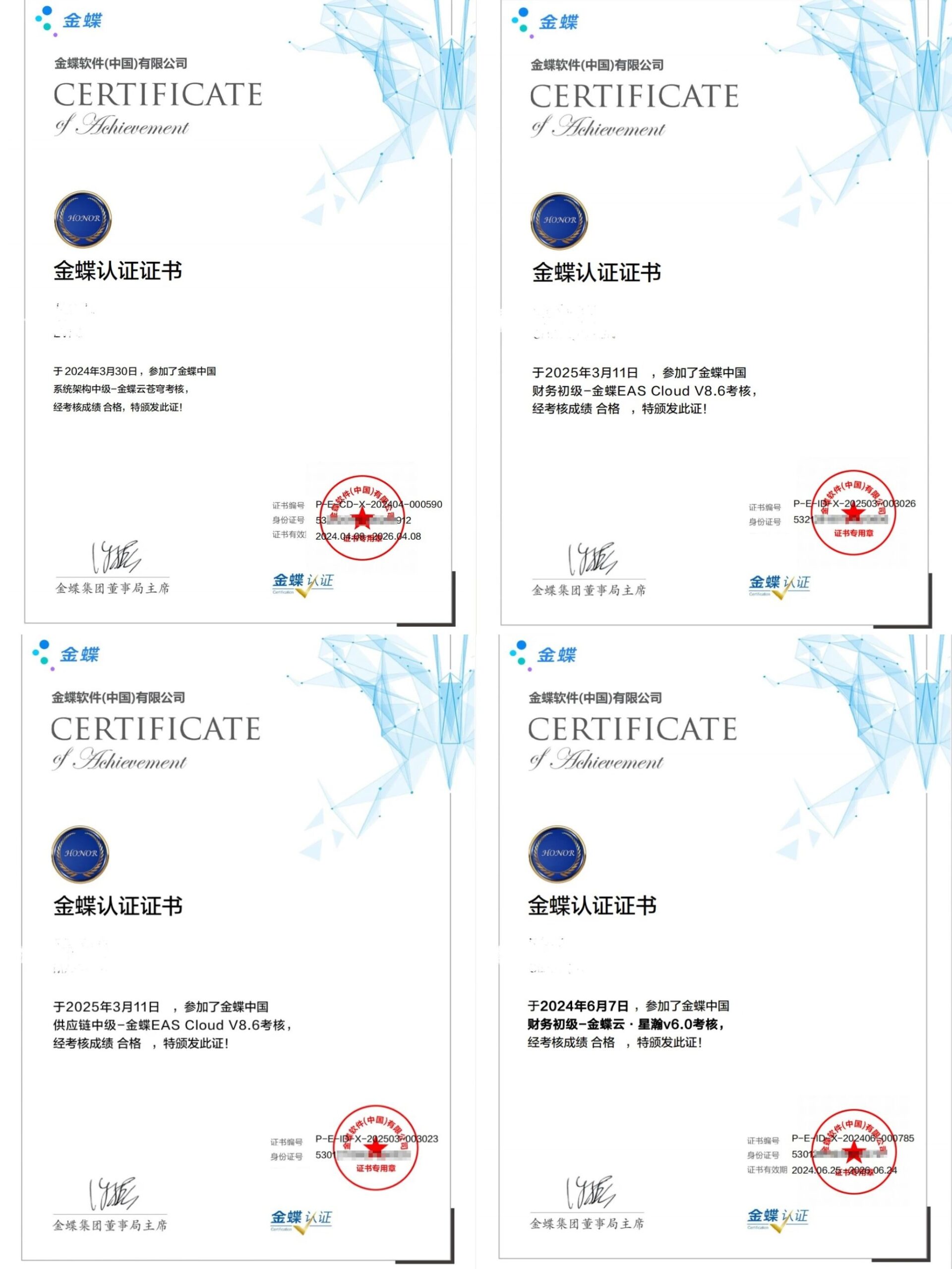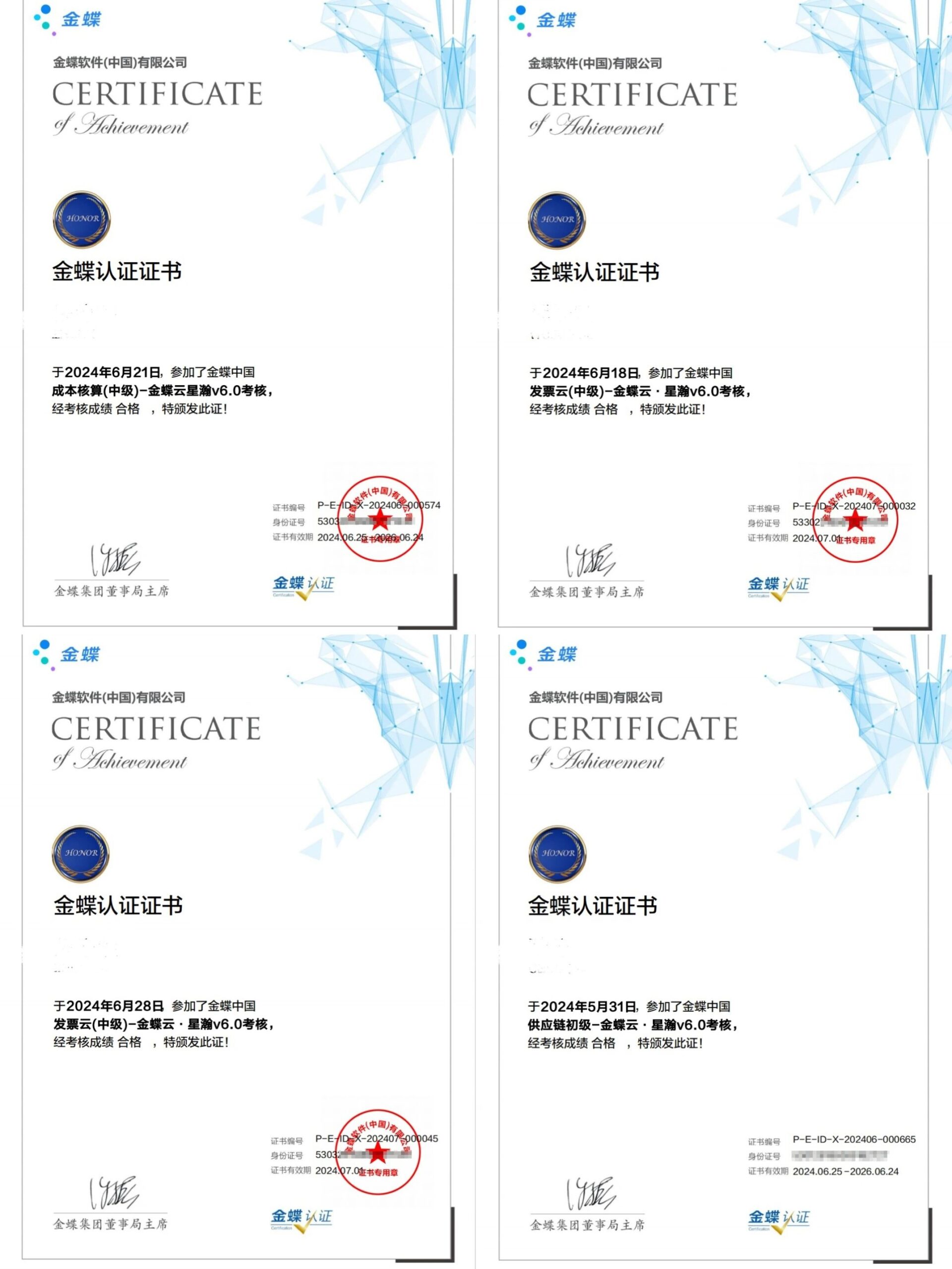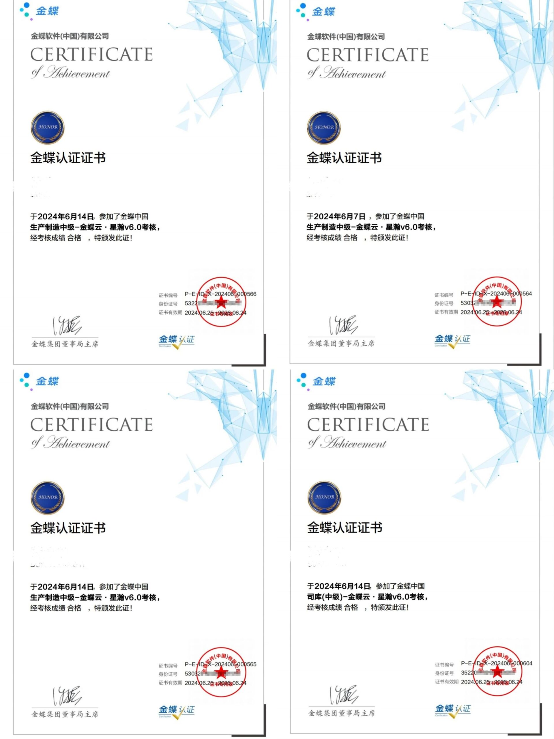 截止2025年3月,公司人才培养计划取得重要突破——交付中心同事十余名骨干员工成功通过星瀚供应链、财务;金蝶EAS Cloud初、中、高级认证,全员通过率100%,标志着公司在企业数字化服务领域的技术实力迈上新台阶。
