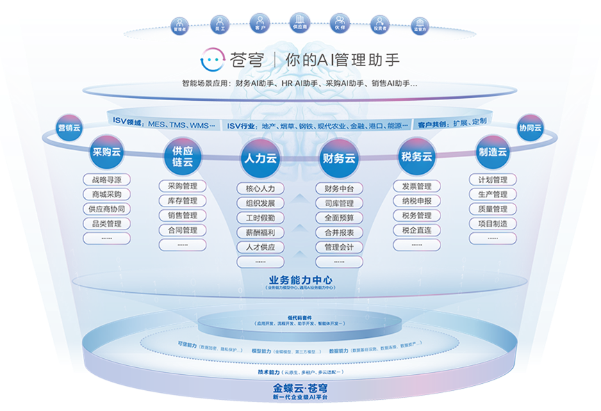 金蝶云·星瀚是金蝶面向大型企业打造的SaaS管理云旗舰产品,深度集成财务、供应链、人力资源等全场景数字化能力,并依托金蝶云·苍穹PaaS平台的智能底座,实现企业级AI能力与业务场景的深度融合。作为金蝶“AI优先”战略的核心载体,星瀚通过苍穹GPT大模型技术赋能,成为推动企业智能化转型的超级引擎。