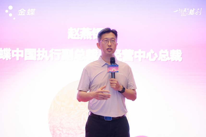 金蝶中国执行副总裁、经营中心总裁赵燕锡为大会致辞,他明确提出三大核心共识为伙伴指明发展方向:AI+SaaS 融合趋势加速、金蝶全面向 AI 转型、坚守生态战略核心地位,并确立 2030 年中型业务 70% 订阅收入来自伙伴的长远目标。